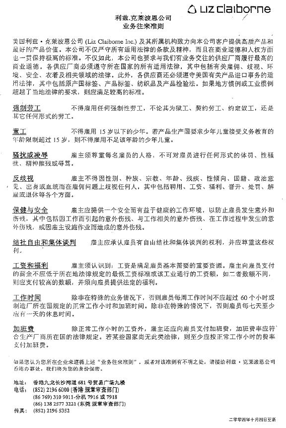 Liz Claiborne业务往来准则