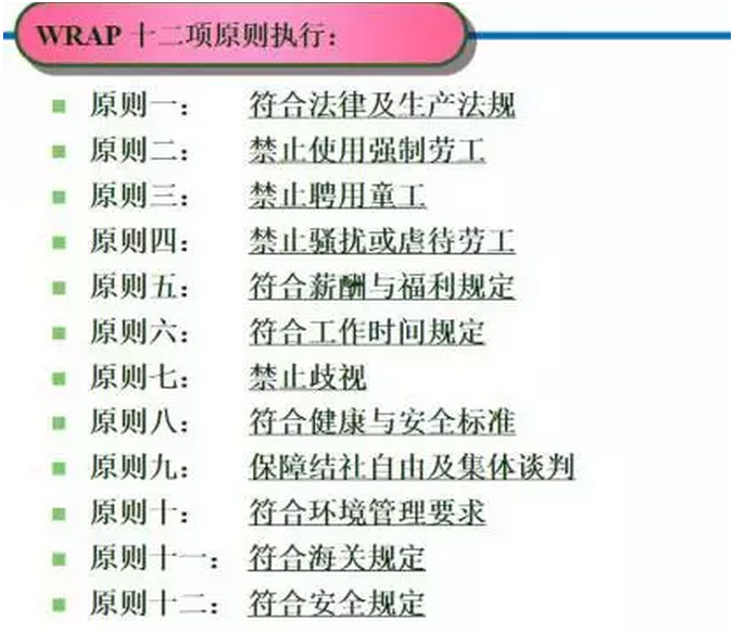 一是近期的大新闻“沃尔玛接受八大标准”,里面有WRAP,并且WRAP是美国人弄出来的标准,比较容易获得沃尔玛的认同。