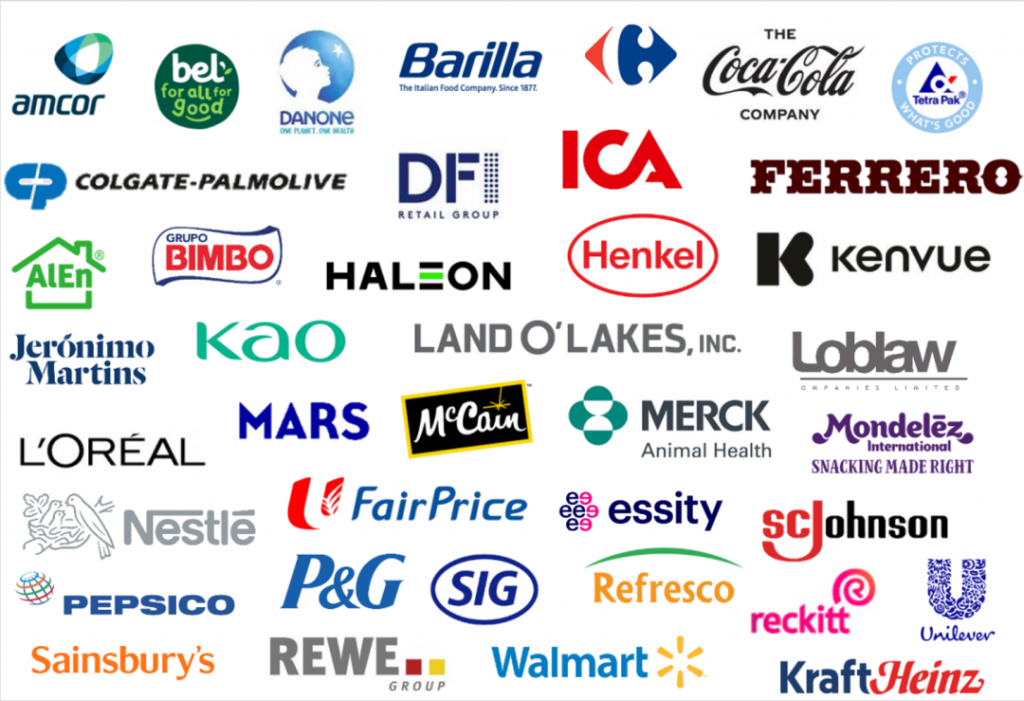 目前,CGF黄金设计原则在全球有超过30个签约方,包括安姆科,达能,家乐福,可口可乐,利乐,高露洁,DFI零售集团,费列罗,赫力昂,汉高,强生,花王,欧莱雅,玛氏,麦肯食品,默克动物医疗,亿滋,雀巢,庄臣,百事,宝洁,康美包,利洁时,联合利华,沃尔玛,卡夫等。